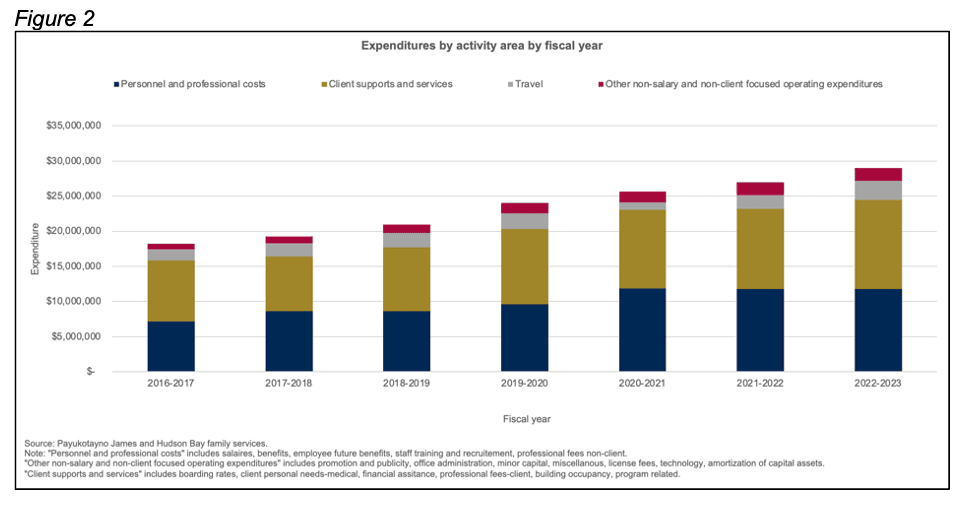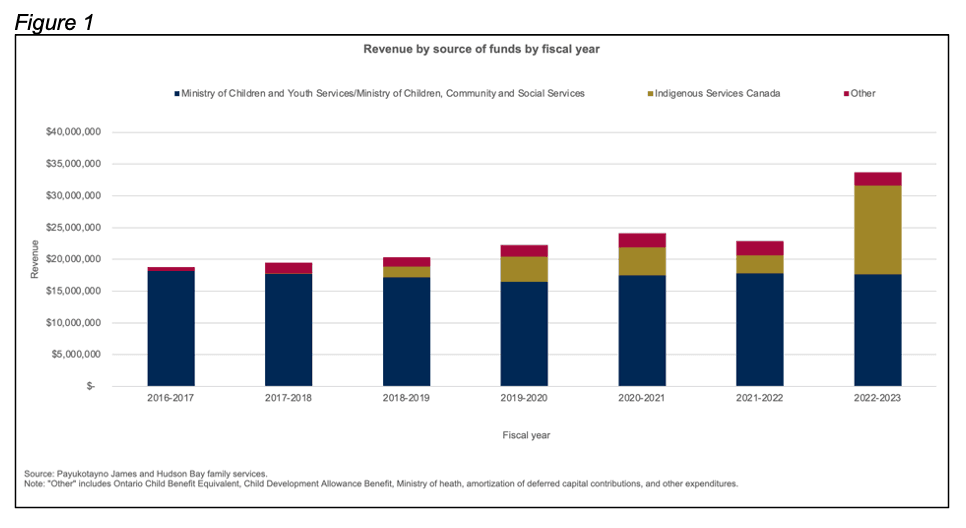 Payukotayno is funded primarily by the Ministry of Children and Youth Services (ON), but has seen increased funding directly from Indigenous Services Canada (ISC) in recent years, particularly through CHRT-related funding (see Figure 1).