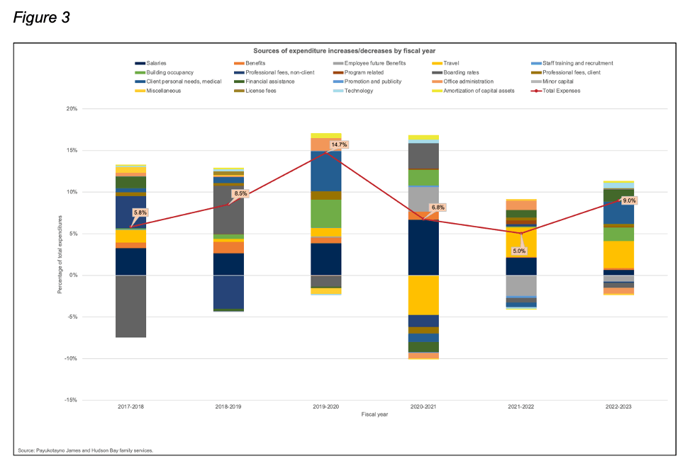 Expenditures have steadily increased over the past seven fiscal years, including in years with lower revenues. A breakdown of expenses by fiscal year is presented below in Figure 2. The source of increased expenditures has varied by fiscal year (see Figure 3).